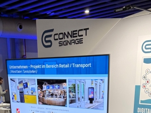 Das Produkt Connect Signage haben wir kürzlich in unsere Produktpalette aufgenommen. Es handelt sich dabei um eine cloud­basierte Lösung. Der große Vorteil hierbei ist, dass es keiner Software Installation beim Kunden bedarf, um diese Option zu betreiben. Die Lösung arbeitet mit allen bekannten Displayherstellern zusammen.