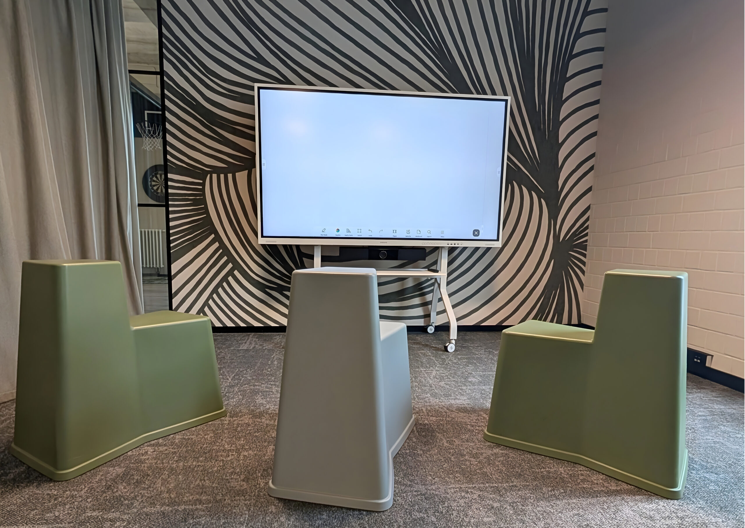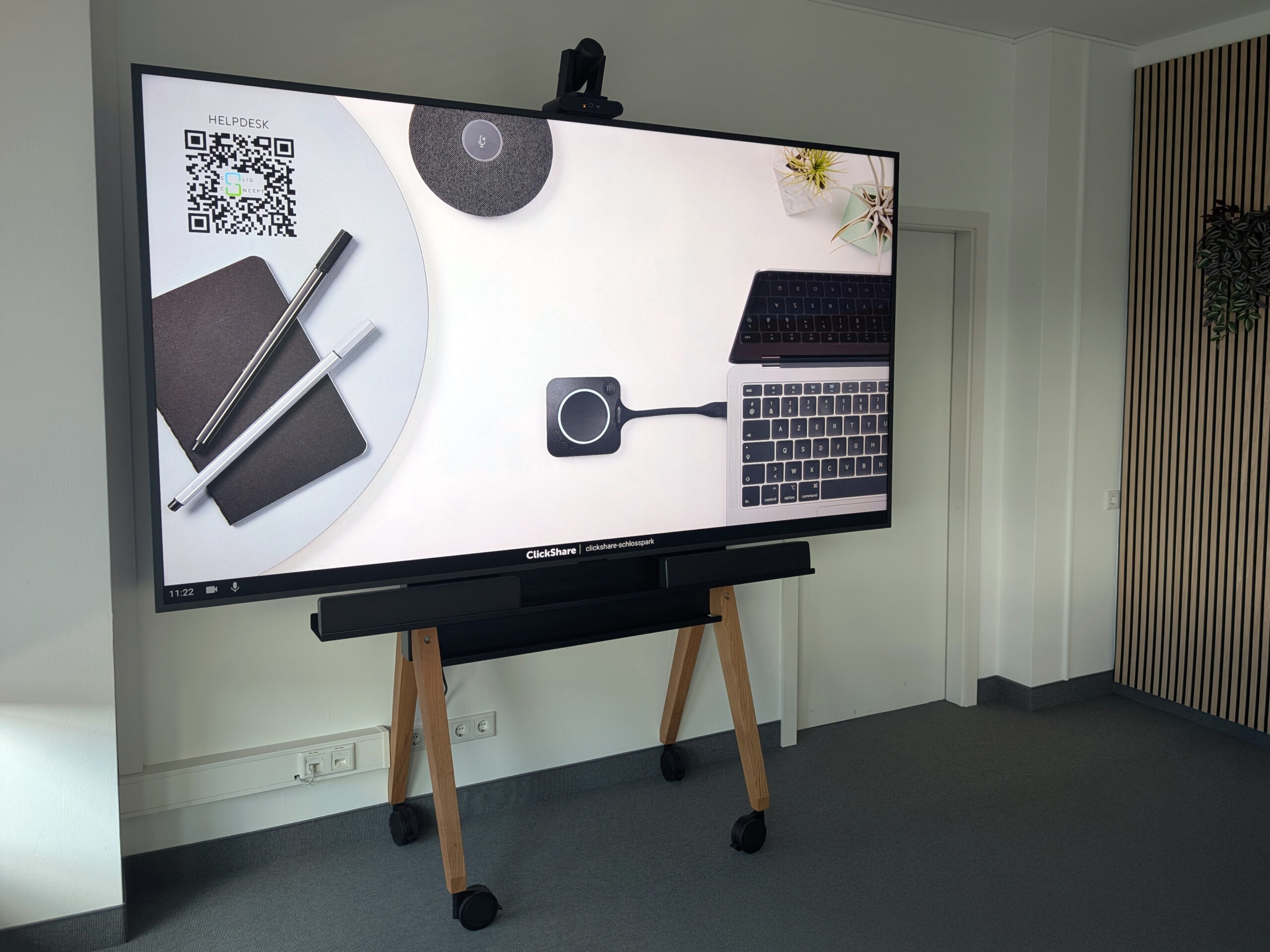 In den Räumlichkeiten von designfunktion haben wir eine Medientechnik-Lösung umgesetzt, die genau zu den Anforderungen des Teams passt – schlicht und funktional. Im kleinen Besprechungsraum wurde eine Videokonferenzlösung per Kabel installiert. Im Showroom ein großes Samsung Flip Touch-Whiteboard. Damit können Präsentationen, interaktive Workshops und Videokonferenzen ganz unkompliziert stattfinden. Die Kombination mit ClickShare ermöglicht zusätzlich, Inhalte schnell und kabellos zu teilen. Vielen Dank an unseren Partner designfunktion!
